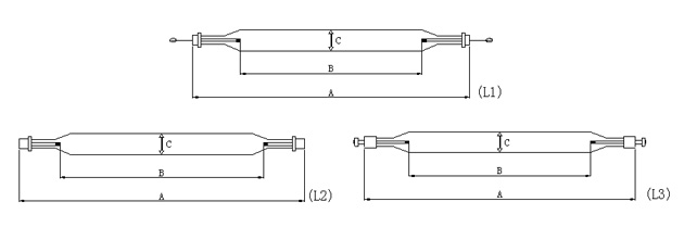序號(hào) | 圖號(hào) | 功率 | 工件電壓(V) | 工作電流(A) | 全長A | 極距B | 管徑C | 功率密度(W/mm) | 備注 |