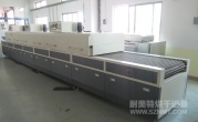 烘干爐部分外形尺寸:總長18米,外寬1.34米,網帶寬1.1米,總高1.22米,進料部分長10米,烘干部分長6.0米,緩沖區長0.3米,冷卻區1.2米,出料部分長0.5米;