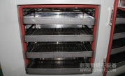 1、外形部分:外形材質采用2mm厚冷板折彎而成,表面高溫靜電噴塑(非普通油漆)耐腐蝕,防生銹,外形尺寸:寬0.85米,深0.48米,高1.31米,單門,配加強型鍍鉻方鋼門鎖,拉手。底部配可移動腳輪,方便烤箱進出。
