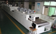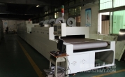 2、外形尺寸(約):總長24500mm*總高1740mm*總寬1890mm,地面到網(wǎng)帶的高度為950-1050mm,爐體內(nèi)進料高度為150mm;烘干部分總長14000mm,分7段獨立控溫(每段4個測溫?zé)犭娕迹慷?000mm。冷卻段長4000mm,UV區(qū)2000mm,前后緩沖區(qū)各長500mm,進料部分長2000mm,出料部分長1500mm, 爐體前后大梁上方裝有急停開關(guān),共4個。